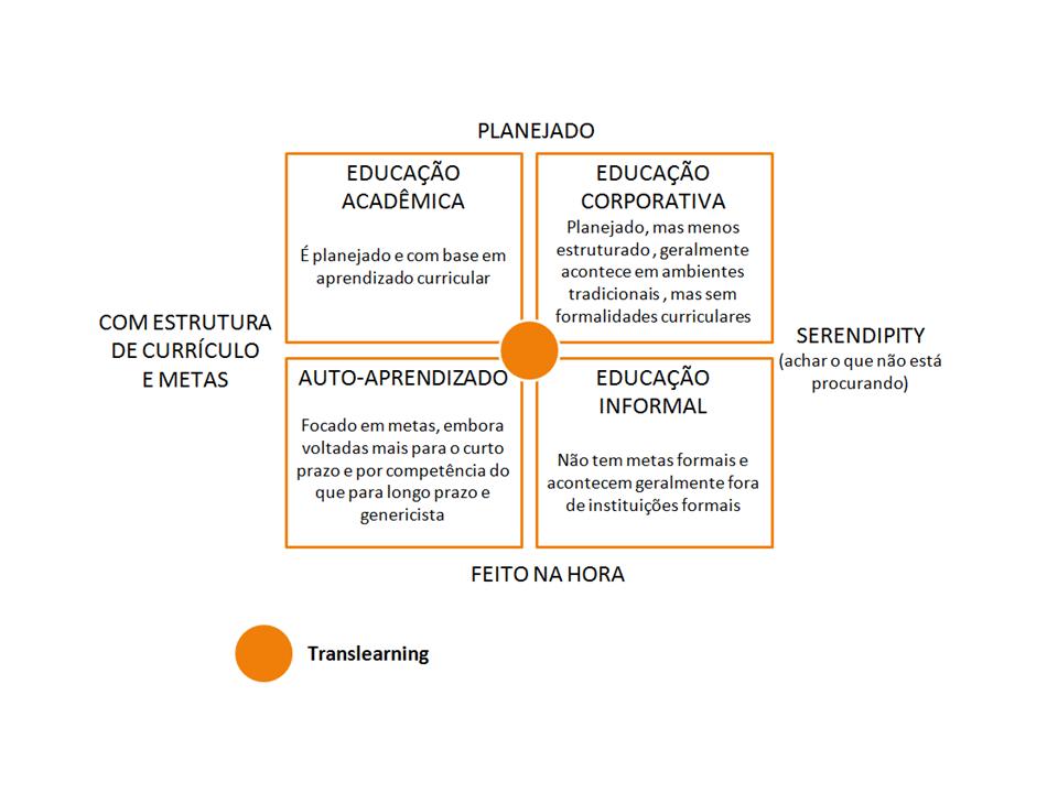 O translearning acaba ficando um pouco no “meio do caminho” das formas mais tradicionais de ensino, conforme o mapa adaptado abaixo: