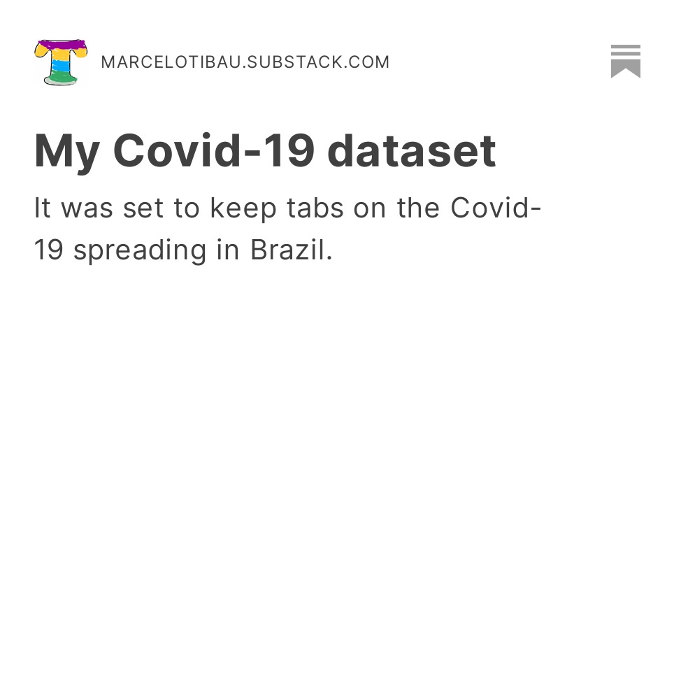 The consortium disbanded on January 28, 2023 after more than 80% of the population was fully vaccinated and the cases and deaths reached a stability. In this sense, I decided to consolidate the dataset and make it public. Anyone can have access to it at my GitHub repo (https://github.com/marcelo-tibau/covid-19). It was a long journey, but I confess that I am neither relieved nor satisfied. Maybe because it was a daily routine to retrieve the data for more than a 1,000 days or because I still hold my horses regarding the pandemic. Anyway, I hope sooner than later we all could sign in relief and breath undaunted as this pandemic becomes part of History books.